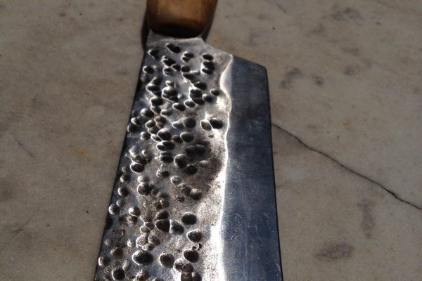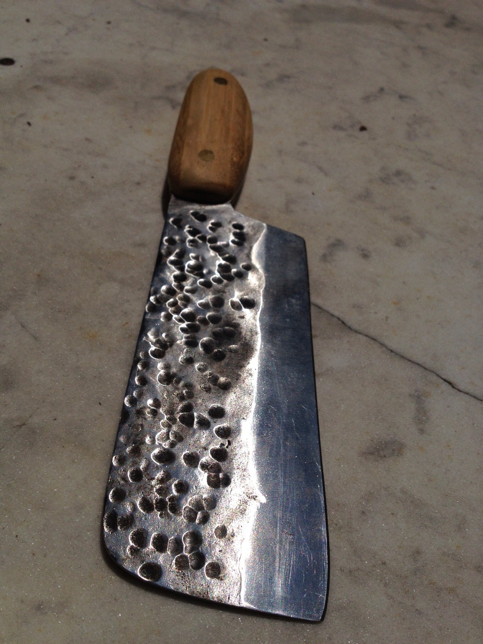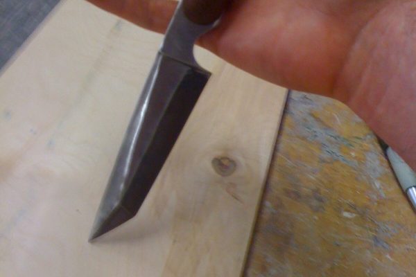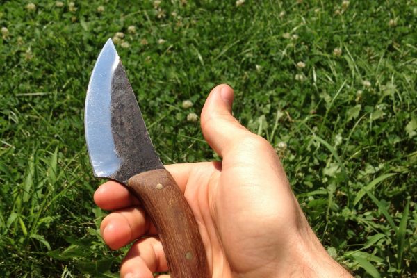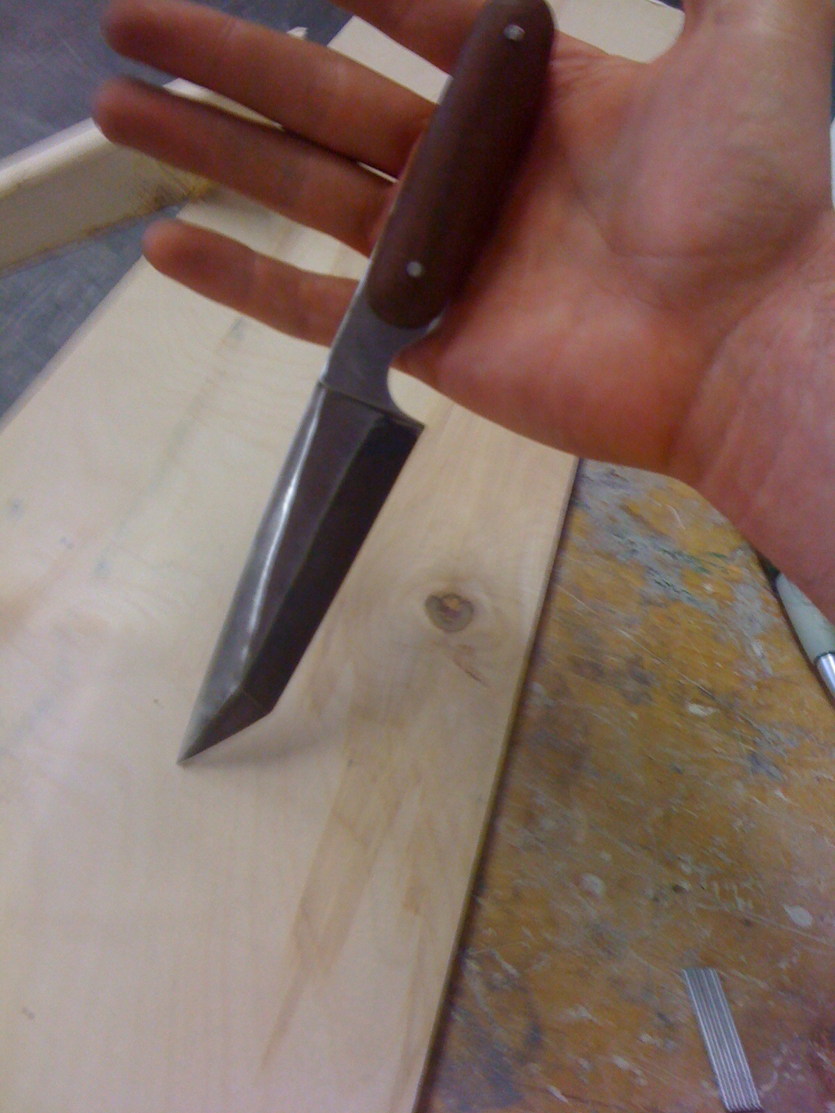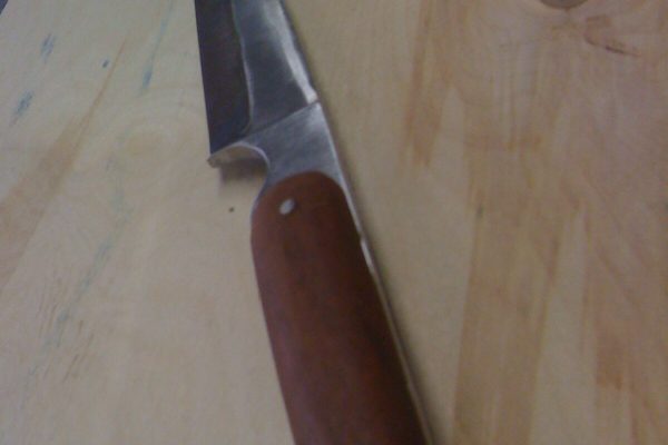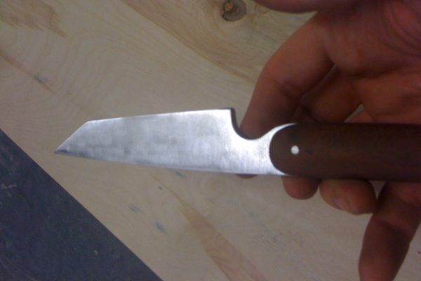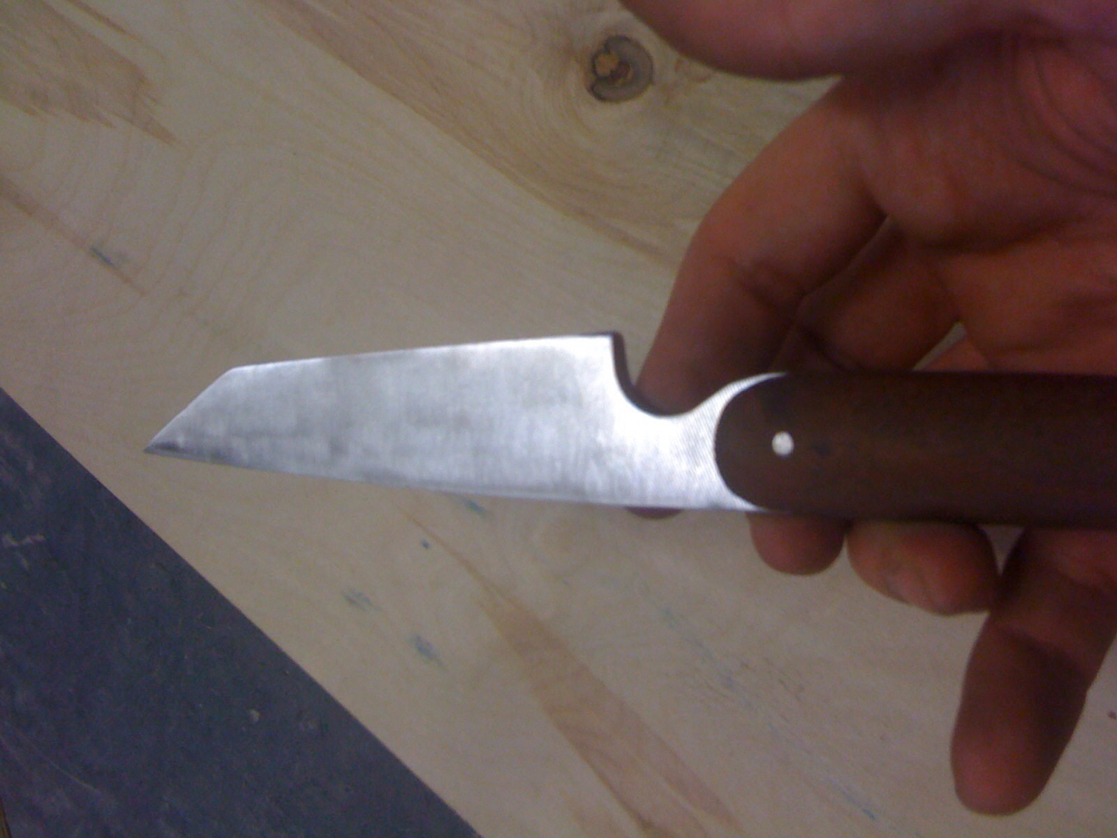 Overview: These knives came out of my interest in the process for making a functional and beautiful knife using discarded materials like high carbon lawn mower blades and old metal files. I began by heat soaking the metal and cutting the basic shape on a bandsaw. The blade profiles and edges are shaped using a belt sander. Wood handles are shaped using files or a belt sander and then attached with rivets.