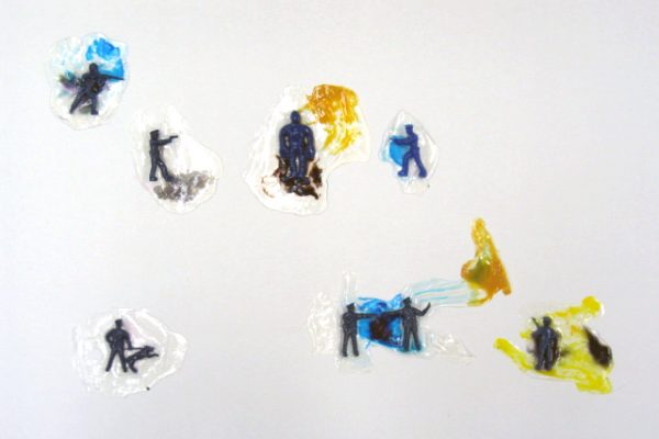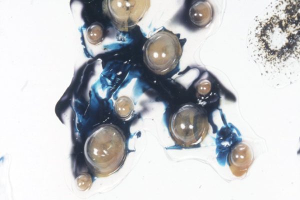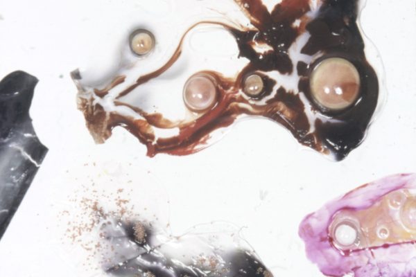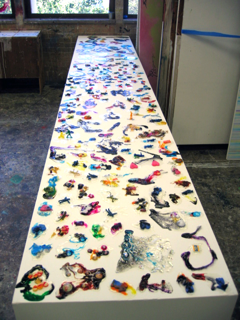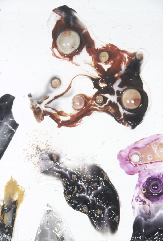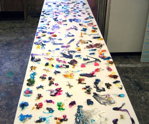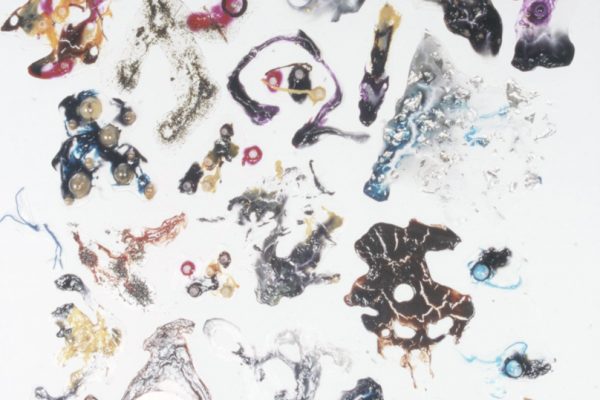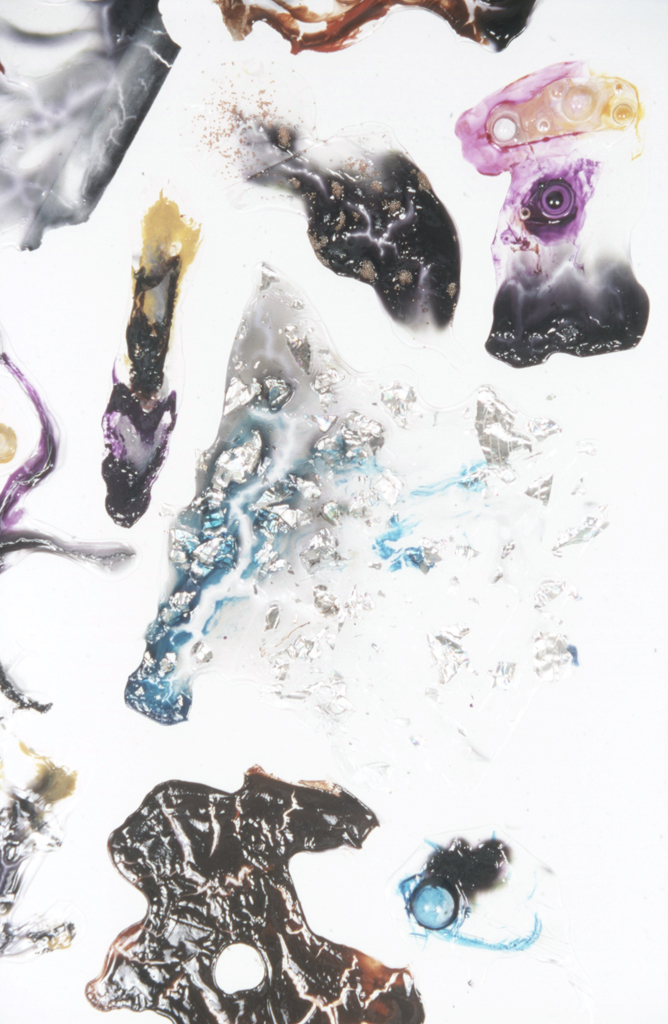 Overview: I have a BFA degree in Drawing and Painting. My passion for painting in mixed media began with a love for watercolour, and ended with a passion for material play. The first image is a close up detail shot of my play with dripping vibrant inks into clear acrylic mediums and experimenting with the addition of various found objects. The second image is not a single piece; it consists of 100 variations of clear acrylic play.
